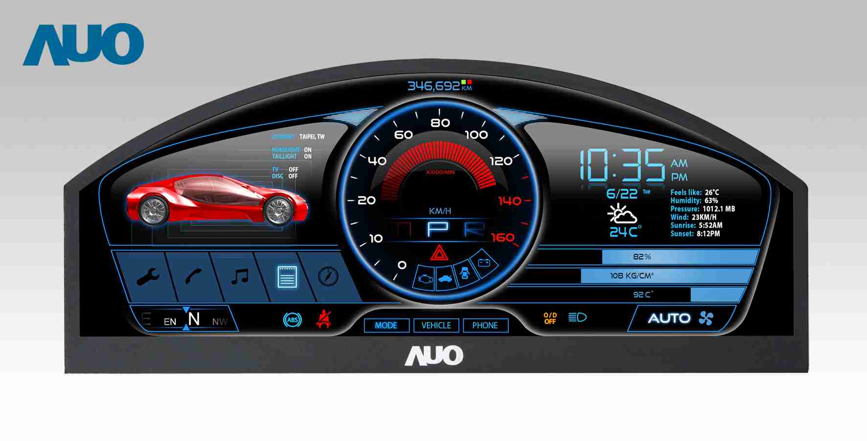 龙门国际 12.3吋超高解析异型切割车用面板,,,,拥有流线外观及精细画质