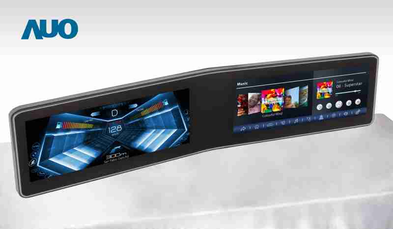 龙门国际 V 型曲面驾驶舱显示器,,,采全贴合拼接仪表板及中控台显示屏