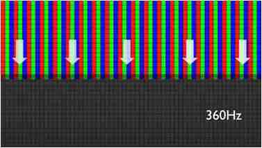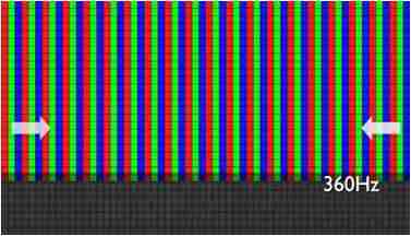 传统液晶驱动是从左到右单向进行,,,,在画面更新速度愈来越愈快的情况下,,,位于驱动线路末端的右下角区域,,,画素的闸极来不及在短时间内获得足够电压,,,无法显示出正确的颜色资讯。。。。 |